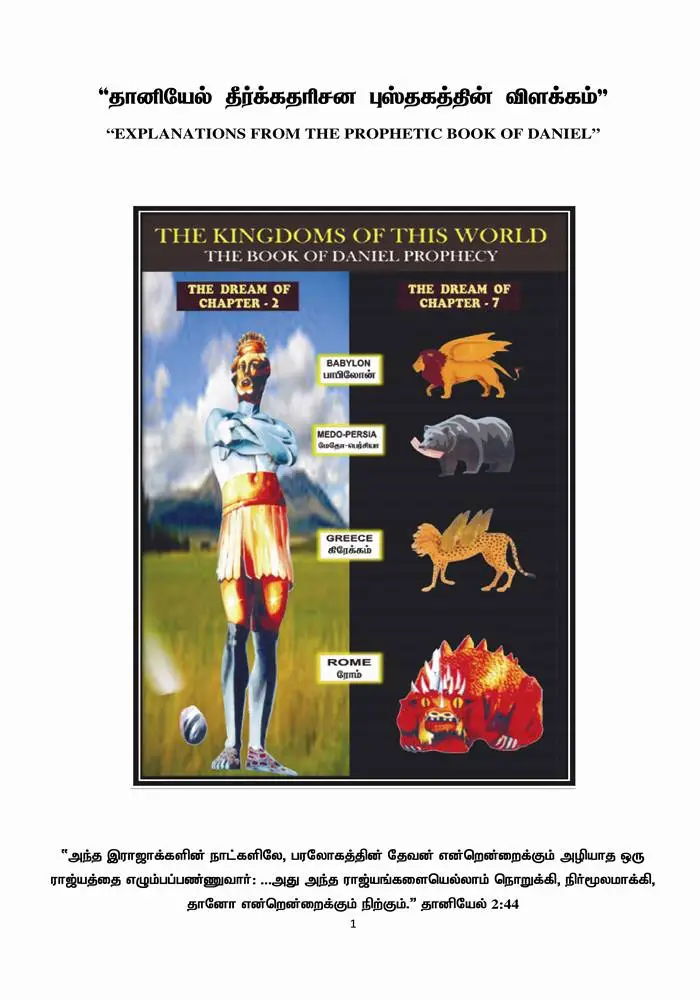 தானியேல் தீர்க்கதரிசன புத்தகத்திற்கான விளக்கம் இந்த புத்தகத்தில் விவரிக்கப்பட்டுள்ளது . இந்த புத்தகமானது பாஸ்டர் பைபில் இன்ஸ்டிடியுட் என்பவர்களால் எழுதப்பட்ட “Daniel the beloved at Jehovah” என்ற ஆங்கில புத்தகத்தையும் அநேக ரீபிரிண்ட்ஸ் மற்றும் வேதாகம விளக்கவுரைகளையும் அடிப்படையாக கொண்டு உருவாக்கப்பட்டது. தானியேல் காலத்திலிருந்து முடிவுகாலம்மட்டும் புதை பொருளாக வைத்திருந்த அநேக தீர்க்கதரிசனங்கள் பற்றியும் மற்றும் அது சம்பந்தமாக உலக சரித்திரம் பற்றியும் நாம் இப்புத்தகத்தின் மூலம் கற்றுக்கொண்டு பயனடையலாம். இப்புத்தகத்தின் சிறப்பு என்னவெனில் கிறிஸ்து மேசியாவாக எப்போது வரப்போகிறார் என்பதையும் இதுவரை உள்ள இராஜ்ஜியங்கள் எப்படி அழிந்தது என்பதையும் கிறிஸ்துவின் நீதியான இராஜ்ஜியம் எப்போது வரும் என்பதையும் அநேக காலக்கணக்குகளை அடிப்படையாக கொண்டு கூறப்பட்டுள்ளது.